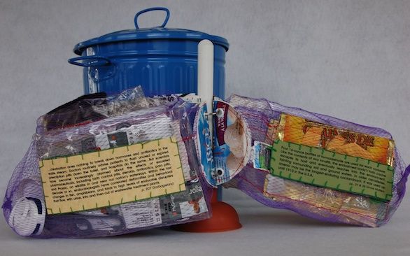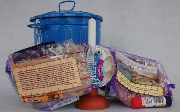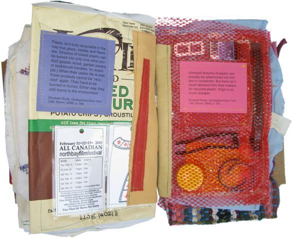 Each mesh bag/page contains one day’s garbage; each book has a week’s worth. The text deals with the effect of garbage on our health.