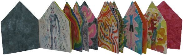 2011, Kingston. 8 spreads. (approx. 10″ x 10″ x 5″: opens to 40″ square) Eccentric edition of 7. Collections: Emory University, Atlanta, Georgia,Yale University, Haas Fine Arts Library, UCLA Biomedical Library, Indiana University, Fine Arts Library, Artists Books Collection, University of Washington, Seattle.