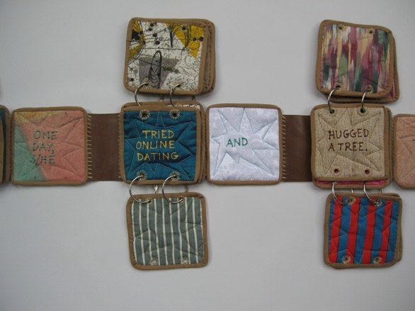 Flip the pages of Once Upon a Time to create your own fairy tale—at each intersection you'll have seven choices. After studying the structure of traditional fairy tales, the artist has substituted contemporary characters and situations. The text is hand-printed in a playful mélange of colours and fabrics, and the pages are quilted.