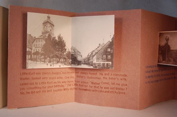 This accordion pop-up book incorporates more entries about food from my mother's journals with pop-ups of food.