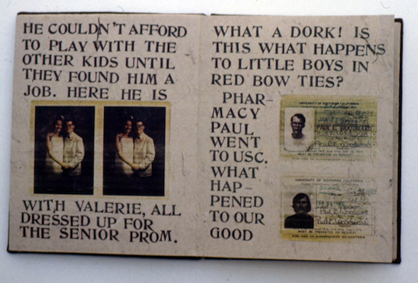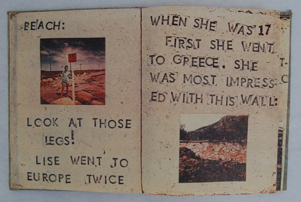 This book was rubber-stamped on my twenty-fifth birthday, while I was living in a blue apartment with silver ceilings, in downtown Detroit, and going to graduate school at Wayne State University. It is a cheeky look at my life up to that point. I wrote the story around the family photos which I had in my possession. I just sat down and started rubber-stamping. I ended up with two themes: "Look at those legs!" and "Is this art?" Traditionally sewn handmade paper pages with hard covers.