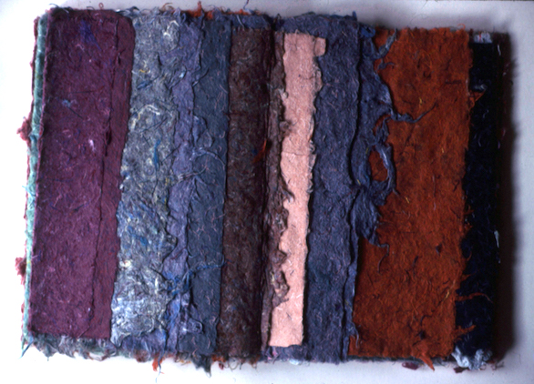 The strips of handmade paper start out at red and go through the colours of the spectrum and back to red again.