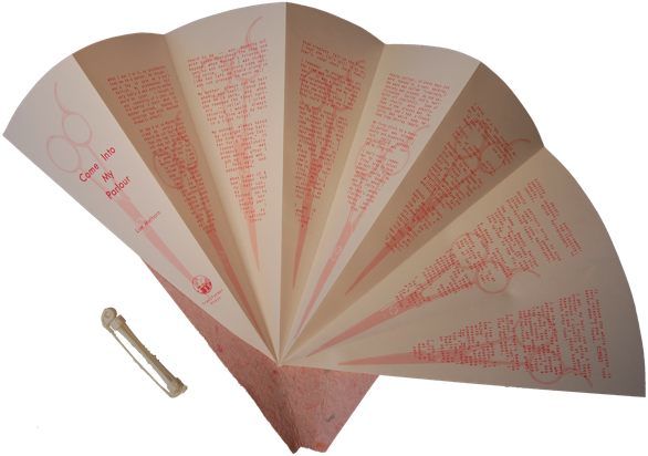 Twenty-eight women share stories about bad hair days. David Melhorn-Boe computer typeset the triangular pages of text, which was offset printed on Byronic Text, in pink. The book has been fan-folded into a triangular, handmade paper wrapper, with a perm-rod closure.