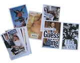Anything Can Happen is a shuffle book, in which the reader can arrange and rearrange the pages to create any number of stories about male/female relationships in the late twentieth century. The images and text are appropriated from men's and women's fashion magazines, collaged and photo-copied on cardstock. The unbound pages are held together by black elastic. #101 to #150 are now photocopied in colour on Boise HDP Color Copy Cover (80 lb.)
